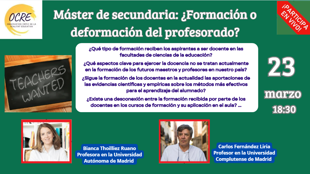 ¡Participa en vivo! Máster de secundaria: ¿Formación o deformación del profesorado?